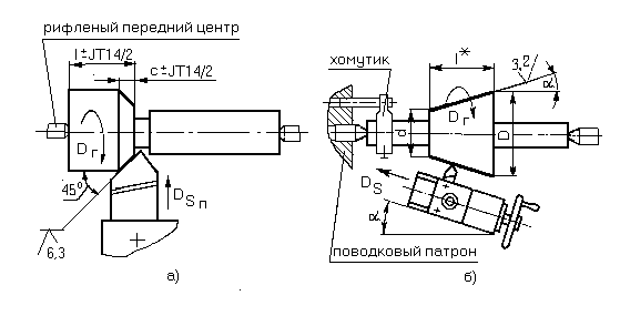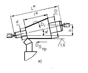 2. Поворотом каретки верхнего суппорта с резцедержателем (рис.2,б) на требуемый угол a. Движение подачи DS обеспечивается вручную вращением рукоятки винта. Способ применяют при обработке наружных и внутренних конических поверхностей длиной до 50 мм.