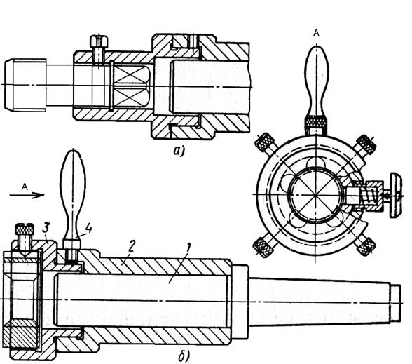 Р и с. 6. Способы жесткого закрепления метчиков (а) и плашек (б)