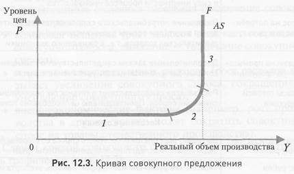 Однако, в отличие от предложения на отдельном рынке, совокупное предложение в макроэкономике графически имеет три различающихся участка (рис. 12.3):