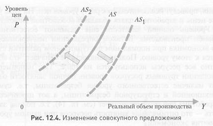 Сдвиги кривой совокупного предложения можно проиллюстрировать графически (рис. 12.4).