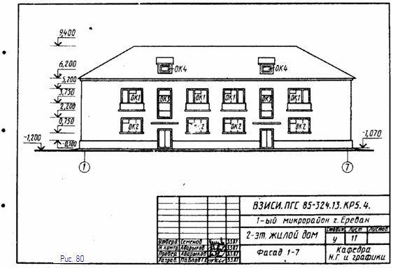 Задача. Вычертить в масштабе 1:100 фасад жилого дома. Индивидуальные задания взять из табл. 32 и рис. 76, 77.