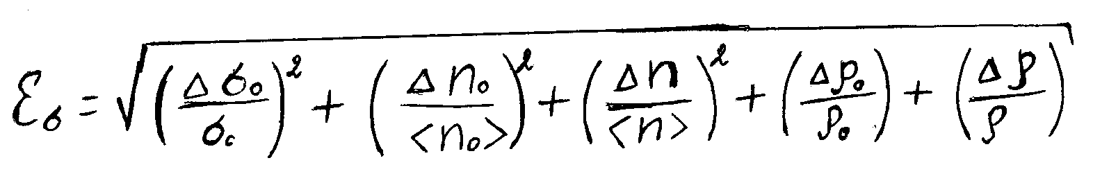 Погрешности плотности будут зависеть от точности, с какой измеряется температура, поскольку значения плотностей берутся из таблиц. Однако даже при ошибке в измерении температуры в 1° ошибка в определении плотности очень мала, и поэтому величины ∆ρ0 и ∆ρ можно принять равными нулю.
