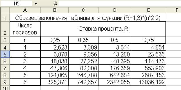 · в ячейку B4 введите формулу, которая произведет расчет в соответствии с функцией. Формула должна содержать смешанные ссылки, в противном случае таблица будет заполнена неправильно;