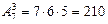 В каждом столбце ровно 6 различных трехзначных чисел, составленных из одних и тех же цифр, но в различном порядке (объясните, почему именно 6). Эти трехзначные числа отличаются друг от друга либо выбором цифр в различных столбцах, либо порядком их расположения в одном и том же столбце. Как известно, такие соединения называются размещенными; значит для ответа на вопрос задачи, нужно найти число размещений из 7 элементов по 3: