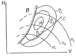 41. Характеристика осевого компрессора H = f (V), буква H - это………