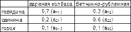 - количество свинины, которая потребуется, чтобы реализовать нашу продукцию,