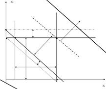 При изменении запаса второго (недефицитного) ресурса смена опорного базиса не произойдет (рис.11). Из выражения (3.10) следует, что
